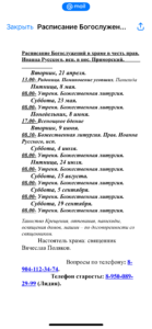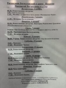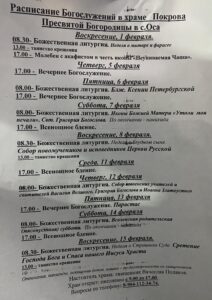 Расписание богослужений в храме Покрова Пресвятой Богородицы с.Оса РАСПИСАНИЕ БОГОСЛУЖЕНИЙ В ХРАМЕ ПОКРОВА ПРЕСВЯТОЙ БОГОРОДИЦЫ С. ОСА Поделиться:TwitterGoogleБольшеОдноклассникиВКонтакте